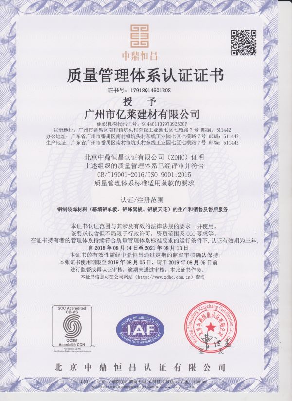 產品生產施工經專業檢測認證,以精選的高標準原材奠定億萊建材的專業材質,為中國裝飾項目提供優質的產品和服務